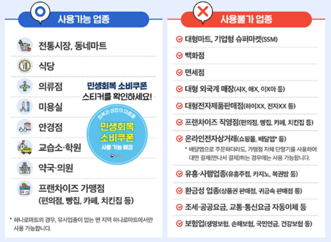 | 사용 제한 | 지급받은 지역 내에서만 사용 가능. 백화점·대형마트·온라인몰 등 일부 업종 제한 |